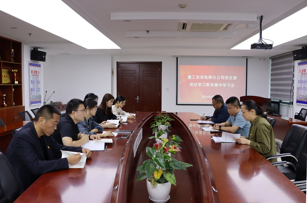 為進一步貫徹落實黨紀學習教育工作部署,強化黨員干部遵規(guī)守紀意識,5月27日上午,建工安裝電梯分公司黨支部開展了黨紀學習教育集中學習研討,分公司黨支部書記姚春靜主持會議,分公司全體黨員參會。